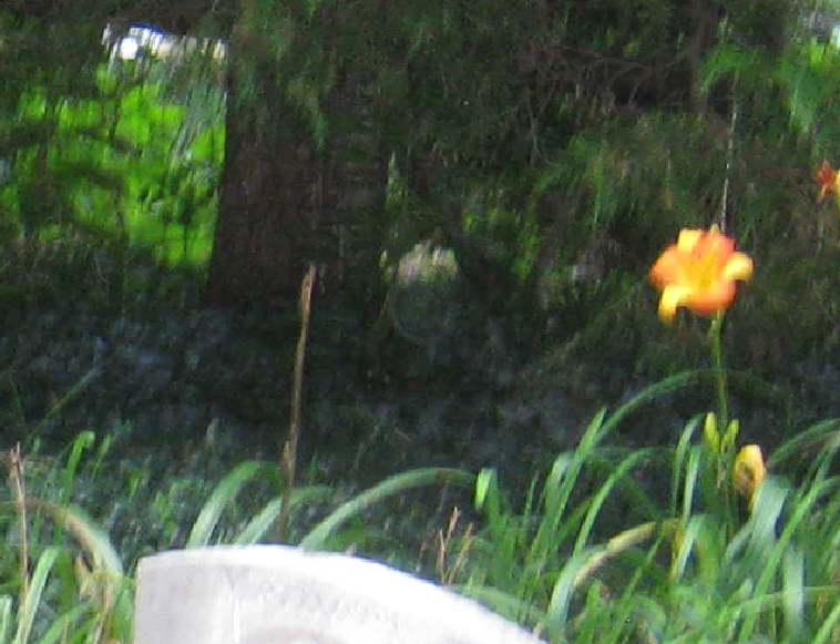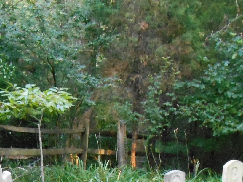 I got a picture of someone peeking out at us from behind a gravestone. Not a shadow – this spirit is in full color.