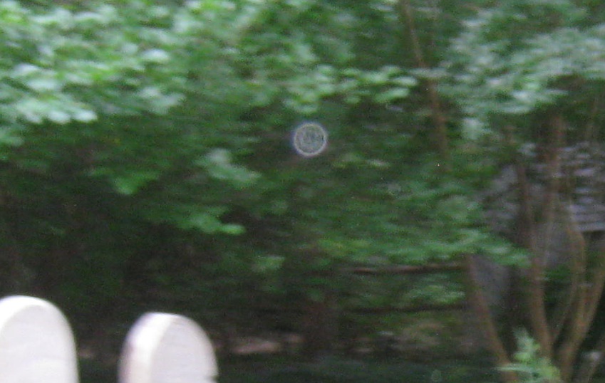 This is a very light Orb, to the left of the yellow flower, but it was one of three Orbs in one picture.